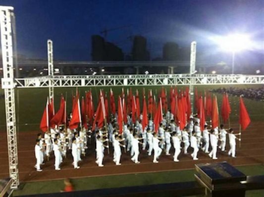 上海尚德实验学校十年校庆高中部掠影 2013-09-29 金秋送爽,丹桂飘香,在这样一个收获的季节,2013年9月28日晚18:00时整,上海尚德实验学校十年校庆拉开了帷幕。在开幕式期间,高中部的教师和学生投入了高度的热情,红旗方队的男同学们步伐整齐,高举红旗,雄赳赳、气昂昂地走过主席台,向母校献礼。教师带领的女生方队活力四射,传递着高中部团结向上、活泼进取的精神。