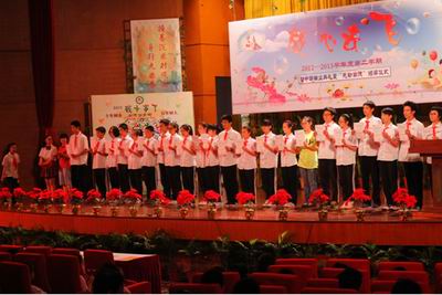 6月21日上午10点,2012学年结业典礼暨感动尚德表彰大会在尚德大会堂举行,悠扬的乐曲声中,一段往昔的短片讲述着孩子们幸福的学习生活;合唱队的“歌舞青春”、舞蹈队的《道德经》、健美操校队的“喜洋洋”精彩纷呈,以不同方式展示着尚德特色课程的魅力。朱校长在典礼上作重要讲话,首先肯定了初中部各年级所取得的优异成绩,又对同学们提出了殷殷期望。典礼中还表彰了2011学年上海市、浦东新区优秀个人、优秀集体,2012学年第二学期初中部优秀个人以及2013“感动尚德”人物等。结业典礼是短暂的,但留给孩子们的记忆却是甜美的,相信他们会用飞扬的激情去点燃青春之火,用蓬勃的朝气去拥抱明天的太阳。