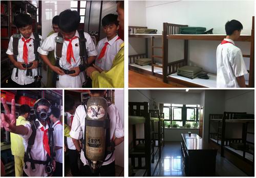 当我们走进他们的宿舍,战士们严明的纪律深深打动了我。最显眼的当然是被子,每个床上的被子都叠成整整齐齐的方块,每一面都好似刀削过一般,整齐划一。这些大家眼中火场上的英雄好汉平时也是粗中有细呀。反观我们同学们,在家、在寝室时不愿整理床铺这些行为,的确应该向他们学习。
