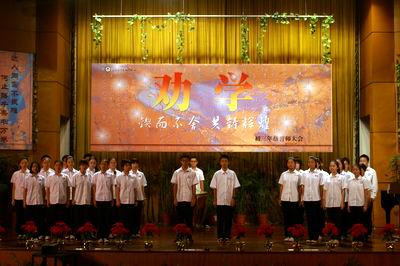 当已经“花开各名校”的学子们的在大屏幕上出现的时候,台下的学生们的脸流露出羡慕的神色,一个个有力的拳头攥的紧紧的。当零点乐队的《相信自己》的音乐响起,大屏幕上的四校名单,市重点名单,以迅雷不及掩耳之势出现时,全场掌声雷动,学生们的学习的热情彻底被点燃了!