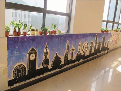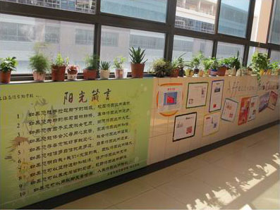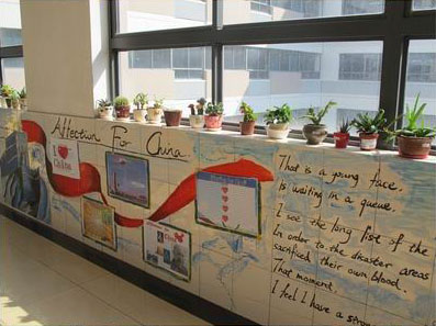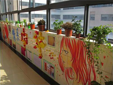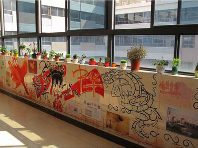 “打造有尚德特色的校园文化,让每一面墙都会说话。”走进初二年级的走廊,窗台上满目青绿,一盆盆学生们用心挑选,精心养护的绿色植物让走廊变得更加生机勃勃,令人心旷神怡。墙面上有初二年级学生的阳光箴言和学生们为十月民族精神传承月精心绘制的文化墙“情系中华 ---Affection for China” ,设计精美的小报,手绘的版面,充分凝聚了各个班级宣传小组的创意和灵感。