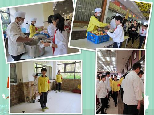 践。初中部学生的主要工作任务是在食堂帮助分发水果、组织学生 一米 线后排队、提醒归还餐具轻拿轻放和维护地面整洁。校园卫生小组的主要负责小操场、寝室楼区域和教学楼 E1, E2, E3 间的花园环境的保洁工作。已经有三个班级顺利完成了值周任务,执勤员们每天早晨、中午和放学后三个时间段放弃休息,不怕脏不怕累,帮食堂阿姨分担工作,钻入树丛捡拾寝室楼下堆积多年的垃圾,他们的努力和尽责得到了初中部全体师生的认同和配合,也受到了学校餐饮和物业部门的肯定和赞扬。最重要的是参与的学生通过亲身体验后感悟了“对人感恩、对己克制、对物珍惜、对事尽责”的内涵。 |