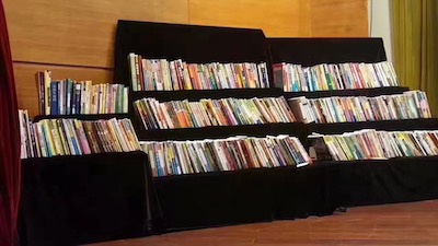 瞧!一排排书籍整齐地摆放在尚德大会堂的舞台上。嘿,告诉你吧,这是我们四年级的小朋友准备捐给希望小学的书呢!周末,小朋友们精心挑选了自己最喜欢的书,在扉页写下了赠言,还亲手制作了精美的书签,还有些小朋友拍摄了小视频,送上了对希望小学孩子们的祝福。