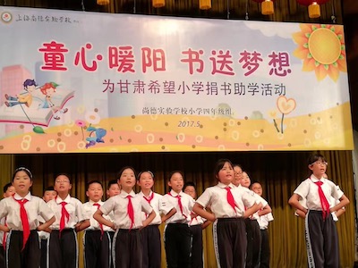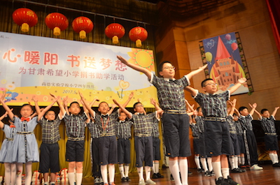 你捐献一本书,我奉献一点爱,你我手拉手,心连心,必定能汇成一道爱的洪流,让世界充满爱。尚德小学部四年级组“童心·暖阳”希望小学爱心捐书活动在易老师指导的合《让世界充满爱》中落下帷幕。