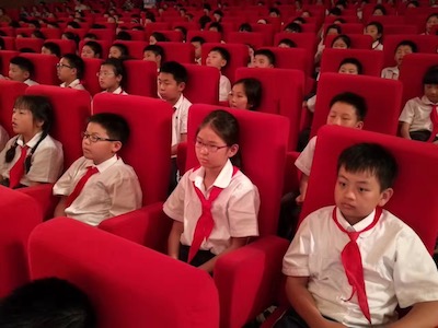 他向我们介绍了自己播撒爱心的经历。瞧!四年级小朋友们专注的神情。