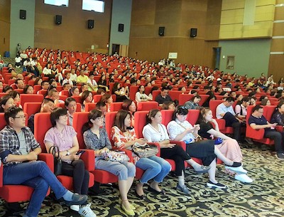 在大会堂,尚德初中部的张朝鑫副校长作了报告,为家长们解读小升初政策,介绍了初中部预备年级的招生流程。融合部MYP的邵美妮主任也向家长们介绍了融合部的课程特点和招生要求。