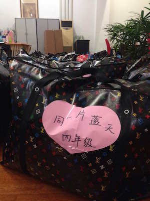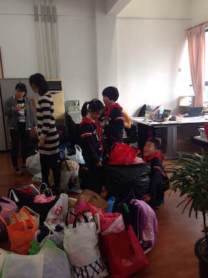 11月30日上午,在四年级办公室老师和同学们一起整理打包献给山区孩子的衣服,虽然大家忙得都满头大汗,但每个孩子的脸上都洋溢着天使般的微笑。只要有爱,这个冬天不太冷!“大爱暖冬”捐衣活动非常圆满地成功了。