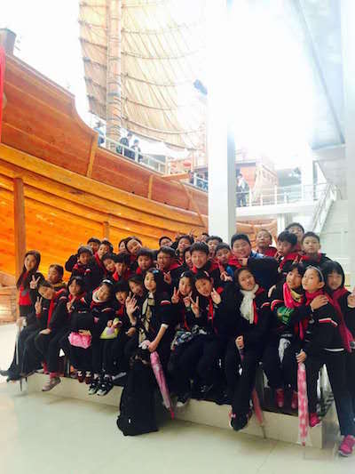走进航海博物馆,同学们就被一只巨船吸引住了。好家伙,这船那么大,站在船头都望不见船尾!讲解员姐姐告诉我们,这是“福船”,来自明代。同学们纷纷上船,体验了一把明代小水手的感觉。再看大船周围,有好多精致的船模型。轮船、帆船、木筏、军舰、特种工作船……原来船有这么多种类,真是大开眼界!不过最令同学们感到神奇的还属戴上3D眼镜,来一次模拟的航海体验。戴上眼镜站在“船头”,那翻滚的波浪、颠簸的感觉、天气的变换,感觉如此真实。瞧,还有同学晕船了呢!“航行”结束,我们又过了一把焊接大师的瘾。手拿焊接棒,完成一次又一次的完美无缝焊接!