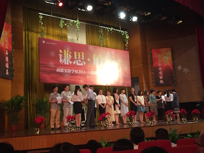 本次大会对在2014——2015学年工作表现突出的优秀教师进行各级各项的表彰和嘉奖:有各学部爱心奖、烛光奖和青蓝奖特别工资津贴的发放,优秀教师、班主任的颁奖,教育教学特别嘉奖,教学评比、学科竞赛综合奖励……这一系列的奖项都是对老师们一年辛苦工作的肯定和鼓励。在本年度的小升初、中考、高考和国际部大学录取中,学校的声望再次的提升。身为尚德一员的我们也为之激动、振奋和骄傲。可称之佳绩连连、硕果累累。