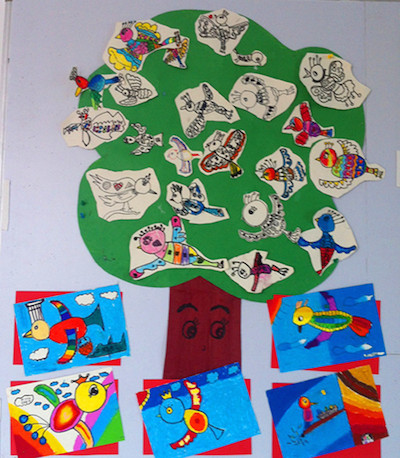 响应美术组号召,我们小学部的小画家们创作出很多优秀作品,来为尚校校园增添艺术风采。这次小学部美术组展板,由刘苑.陈亚.董奇慧,三位教师负责布置,展板主题为【百鸟归巢】, 由一年级和四年级的学生提供美术作品。