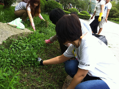 8月27日下午,五年级全体教师进行了一次别开生面、富有意义的“除草比赛”。为响应学校领导“劳动最光荣”的号召,五年级全体教师来到了位于小学国际部外的花坛进行“爱校大扫除”活动,将花坛中的杂草进行清除。