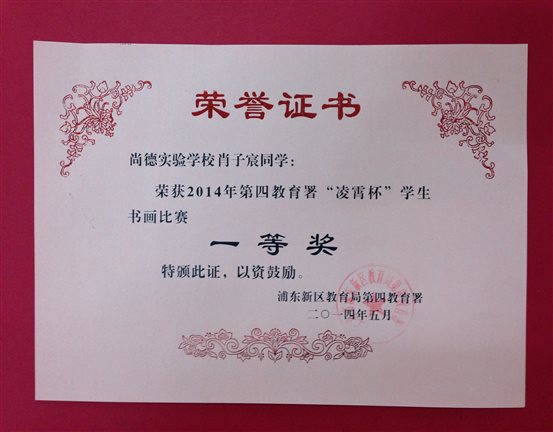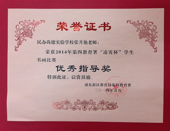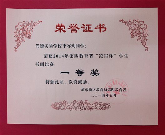 2014年6月,小学美术组喜讯连连,“浦东新区科技绘画大赛”之后,又有获奖证书翩跹而至!2014年第四教育署“凌霄杯”学生书画作品比赛,小学美术组又在比赛中满载而归。本次大赛的主题为《我们的梦想》。年纪小小的孩子们心里都装着大大的梦想,通过自己的画笔,赋予梦想神奇的力量!