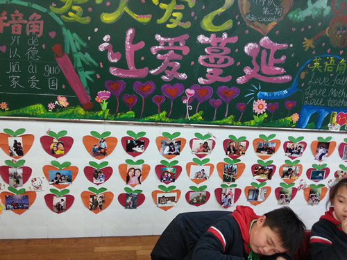 春暖花开的三月,迎来了2014年的春天,在这个生机盎然的季节,一年级的孩子们在班主任老师的带领下,动手动脑完成了“书香走廊”的装饰。