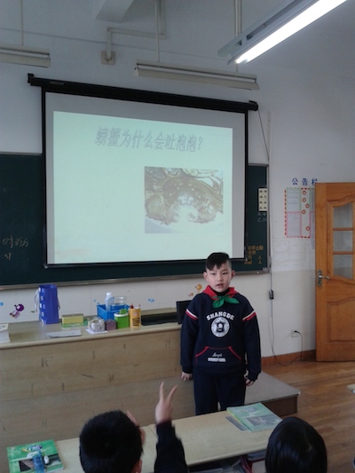 课前两分钟,动脑讲科学 2014-03-13 两分钟预备铃一直是活跃课堂气氛的催化剂,自然学科两年级的同学们开始尝试用有趣的科学小问题来培养课前积极动脑的习惯。 几周下来,同学们已经积累了很多有趣的科学知识咯!“下雪冷还是化雪冷?”、“为什么橡皮能擦掉铅笔印?”“螃蟹为什么会吐泡泡?”这些看似简单但不易回答的问题引起了学生极大的探究欲。小伙伴们不仅乐于回答问题,而且还收集了不少平时生活中的“未解之谜”呢。