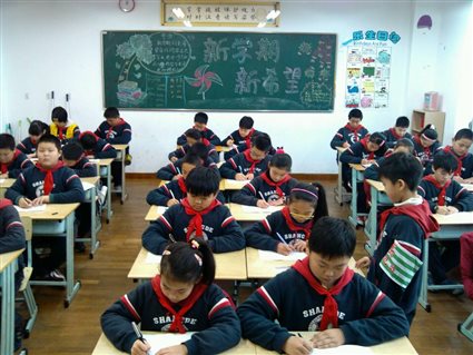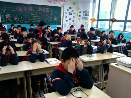 作为小学部的最高年级,孩子们的自觉性与自律性有了很大的进步,班级自主管理也迈入了一个新台阶。各班全体同学共同规划了“班级目标”,制订了“班级公约”。在各班主任的“放手”下,同学们用完早餐速到教室,部分同学已奋战在劳动岗位上开始进行班级环境“美化”,科任老师的得力助手在清查作业,其它同学则准备好学习用品,有的已经开始晨读。午饭后,孩子们或是有纪律地在操场、教室活动,或是拿起书沉浸在书本所描述的缤纷世界里。上午与下午的眼保健操时间,年级自管会的成员班班检查,而各班也有孩子在自主管理,教室里秩序井然。晚饭时,孩子们自觉排队就餐,送好餐盘,有序地返回教室。周五教室走廊外侧按高矮顺序已经排好的行礼箱,也成了这个寄宿制学校一道别样的风景。