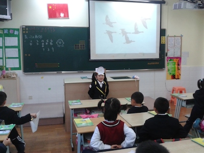 爱动物的小宝贝 2013-11-11 一年级的小朋友们在快乐的学习中,渐渐体会到了爱动物的乐趣。 瞧,他们自编了动物儿歌,带上动物头套,化生为可爱的动物,为课前两分钟做准备呢。 今天的动物主角是小企鹅。可爱的小企鹅有着哪些值得称道的本领呢,原来它们都是是住在南极的动物朋友们,练就了一身不怕冷的好功夫。 尚德实验学校 小学部
