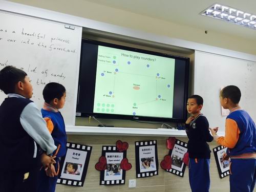 【PYP】运动让你更健康 2015-04-08 本周,三年级富兰克林班级的孩子们学到了一种新的运动----圆场棒球。为了将“运动有益于健康”这样的观点付诸实践并对其它同学们发出倡议,我们制作了海报以及邀请函,并于今天上午去邀请二年级同学参与比赛,同时给学弟学妹们介绍了圆场棒球的比赛规则。大家对即将开始的运动项目都跃跃欲试,到达操场后,很快就忘我的玩起来了。阳光下到处是奔跑的身影,激动的喝彩,流汗的脸颊。运动让每个人都充满活力!