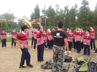 上午学生们在野外环境中进行了真人CS。学生们套上了平时只有在电视里看到的防弹夹,手上还握住了威武的枪。这不仅是一场令人热血澎湃的战争游戏,还是一次对于团队合作的考验。下午又进行了60秒的速度游戏,30张卡片上画着不同的富有含义的图片,每一小组将挑战在60秒中从1到30按顺序排列。别看游戏规则很简单,但其实它是对学生思维能力以及逻辑性的锻炼。