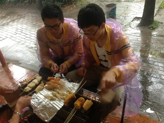 因为下着瓢泼大雨,很多原定计划的项目都无法顺利进行,但我们依然热情高涨,尽情享受这段户外之旅。在这里,我们近距离与大自然接触,远离平日里的钢铁城市;在这里,我们自己动手,学习烧烤食物;在这里,我们大家一起玩真人CS游戏,一起享受团队作战的乐趣;在这里,我们与外教一起体验课外的生活,轻松、愉快地交流。