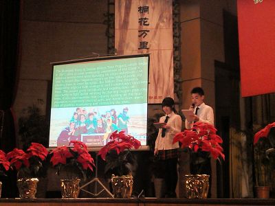 We are proud that the ceremony this year is directed and organized by the students. They also invited Principal Yao and the leader of PTA to attend the ceremony. Videos about students planting trees in Inner Mongolia last year was played. PYP students gave a splendid show. One student representative gave a stunning speech, which brought the ceremony to its peak.