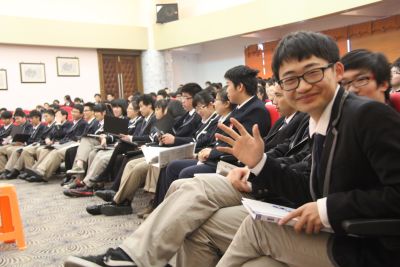 11日下午,和风细雨,科技楼报告厅回荡着悠扬、动听的声音。台上是各班选送的朗诵者,他们以娴熟的技巧和优美的诗句向大家呈现韵文之美。诗歌既涵盖中外,亦有古风与现代的不同风格。其中9A+更是全员出动,他们编排的集体朗诵颇有气势。诗歌多为同学们的原创作品,虽然程度和水平各不相同,但文艺小清新们的热情令人动容。