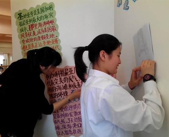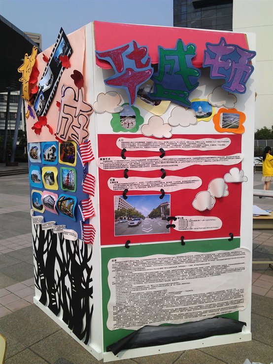 10日午间,同学们花了好几天功夫精心准备展板终于闪亮登场!芝加哥、华盛顿、洛杉矶…别看这些地方大家都耳熟能详,它们都有哪些历史渊源和风土人情呢?通过展板,能工巧匠为我们讲述了这些名字背后的故事。不光是展板,其实早在国庆之前,同学们就已经做起了筹备工作。孩子们力图给大家带来色、香、味及玩乐等全方位的美国文化体验。