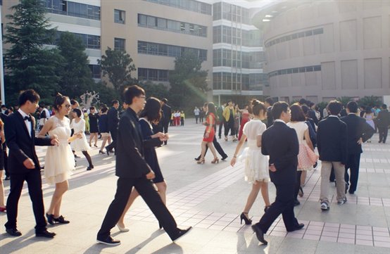 下午3点是令所有师生尖叫的舞会时间。前一秒是端庄优雅的宫廷舞,后一秒又大变身、忽作HIGH翻天的现代辣舞。精心装扮过后,面对朝夕相对的同窗,一时之间都有些认不出来了。穿着华丽的晚礼服,踏着优美的舞步,少男少女们如同身处童话世界。校园舞会也是美国文化十分重要的一部分,同学们通过亲身实践,真正体会了ITRAVEL活动的意义。