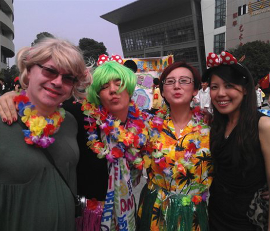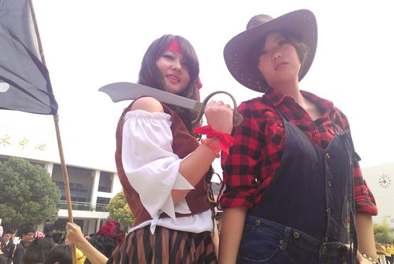 COSPLAY大赛也是本届爱行走活动的一大亮点,PYP小朋友演绎的幼齿版白雪公主活像从童话书里走出来。9年级的几位同学穿上了厚重的卡通人物服,憨态可掬。小恐龙、TOM&JERRY,这些经典的卡通人物造型吸引了众多师生前来与他们合影。高年级同学们的表现也十分出色。JACK船长依旧那么放荡不羁;麦当劳叔叔保持着他一贯的招牌微笑;奥黛丽·赫本造型从气质到装扮都惟妙惟肖。我们的外教也不甘示弱。PATRICK男扮女装,垫胸露腿,还画了俏皮长睫毛,颇有些回眸一笑百媚生的意思。加拿大外教NICK索性钻进了一只火箭,甘愿做一只道具。