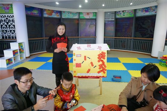 歌舞表演后,家长和宝贝们一起唱童谣、猜灯谜、做鞭炮、写春联、做元宵、玩民间游戏等等……