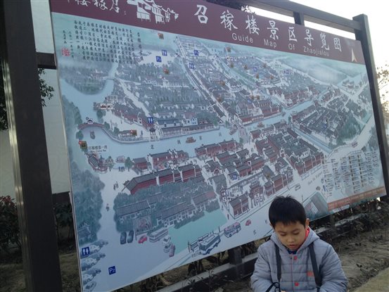 你看,调查“召稼楼”地图的小朋友多认真,拿着相机拍照也很专业,赶紧把这个景区导览图给拍下来吧!