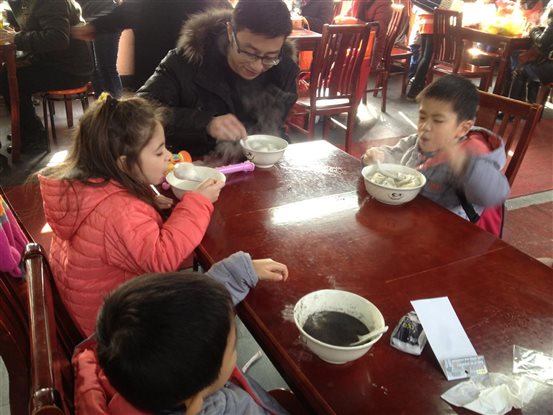 “美食组”的小朋友也不甘落后,“召稼楼”这么多美食,有烧卖、羊肉、还有蹄髈,我们也来好好尝尝吧,味道还不错!