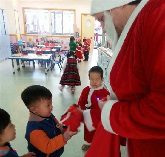 “木头人”的游戏结束之后,每个班级就开始分开各自游戏,有吹纸球、给驯鹿贴鼻子、制作圣诞卡片、海洋大厅寻礼物等等,当然还少不了的是圣诞老人给小朋友们送礼物啦!