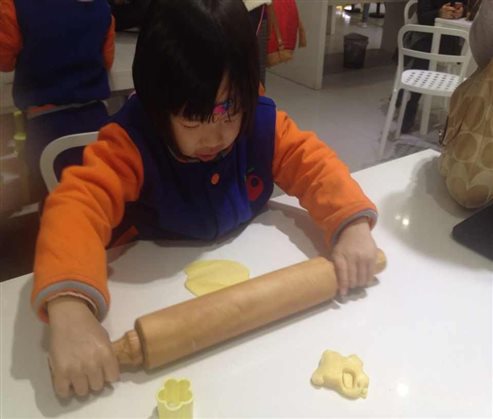 来到了巧克力开心乐园,彷佛置身于一个神奇的城堡,里面所有的东西都是由巧克力做的,比如说Hellokitty,小熊等等,好想吃一口。接着小宝贝们来到了烘焙体验馆,自己亲手做起了卡通饼干,在和面粉、擀面团的过程中享受到烘焙的乐趣,看起来还不错吧?要不要尝一口呢?