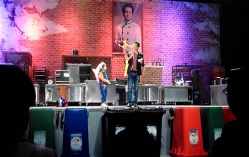 下午我们还来到了面包音乐剧场,欣赏了神奇魔术师的魔法表演:变钞票、变彩带、魔法教学……我们幼儿园的小朋友还上台当起了助演嘉宾,不过我们可不是托儿噢!^.^