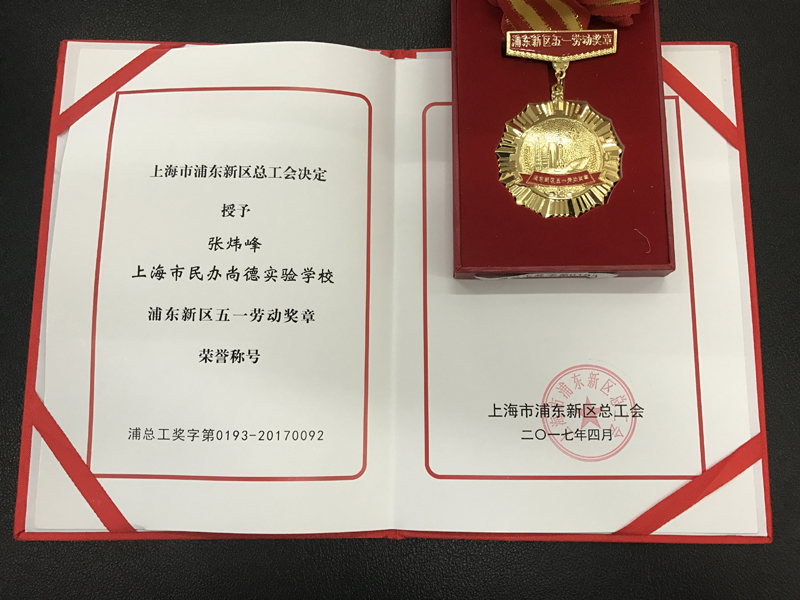 张炜峰同志被授予浦东新区五一劳动奖章荣誉称号